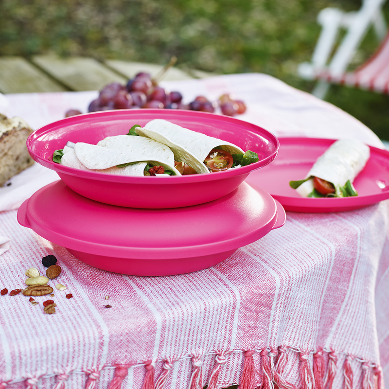 Het Tupperware Aloha Bord is niet zomaar een plastic bord; het is een combinatie van stijl én functionaliteit, die perfect is voor elke gelegenheid. Met zijn kleurrijke en stijlvolle ontwerp brengt dit Tupperware bord direct sfeer aan je tafel, of je nu gaat dineren in de tuin, picknicken in het park of thuis een maaltijd serveert. Doordat het Dubbel Bord uit een diep en ondiep bord bestaat die aan elkaar vastgemaakt kunnen worden, kun je het bord ook afsluiten om zo de inhoud vers te bewaren.