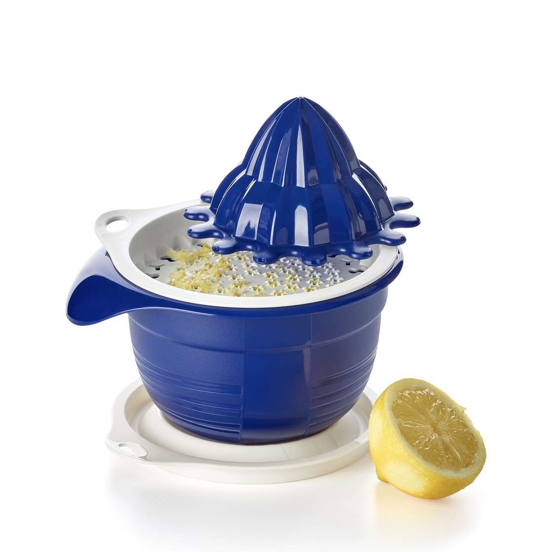 Deze multifunctionele, handmatige Tupperware Citruspers met opvangbakje is onmisbaar bij het bereiden van een heerlijk ontbijt. Dankzij de bijbehorende rasp is het nu wel heel makkelijk om voor geraspte chocolade of kaas te zorgen. Deze multifunctionele Citrusvruchtenpers is ook goed te combineren met de Mixing Bowl 3,5 l en de Mixing Bowl 650 ml uit deze serie. Deze zijn apart bestelbaar.