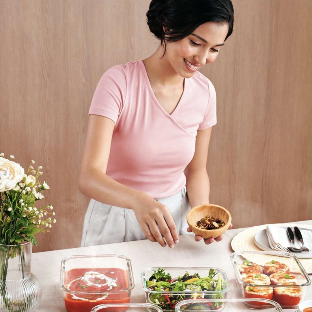 Met de nieuwe Premiaglass glazen ovenschalen van Tupperware haal je een echte allrounder in huis. Je kunt er niet alleen mee bakken of gratineren in de oven of magnetron, maar je kunt er ook je eten in bewaren, invriezen, opwarmen en zelfs serveren. Allemaal dankzij het hoogwaardige borosilicaatglas. Van sappige gebraden kip tot verrukkelijke knapperige ovenschotels, smaakvolle gevulde tomaten, romige lasagne en verleidelijke tiramisu – de Tupperware ovenschalen zijn geschikt voor allerlei soorten voedselbereiding. Dit hygiënische BPA-vrije materiaal is bestand tegen kleurvlekken en geurtjes, waardoor je keer op keer van verse smaken kunt genieten. Dit is de perfecte ovenschaal die ook nog eens in de magnetron kan!