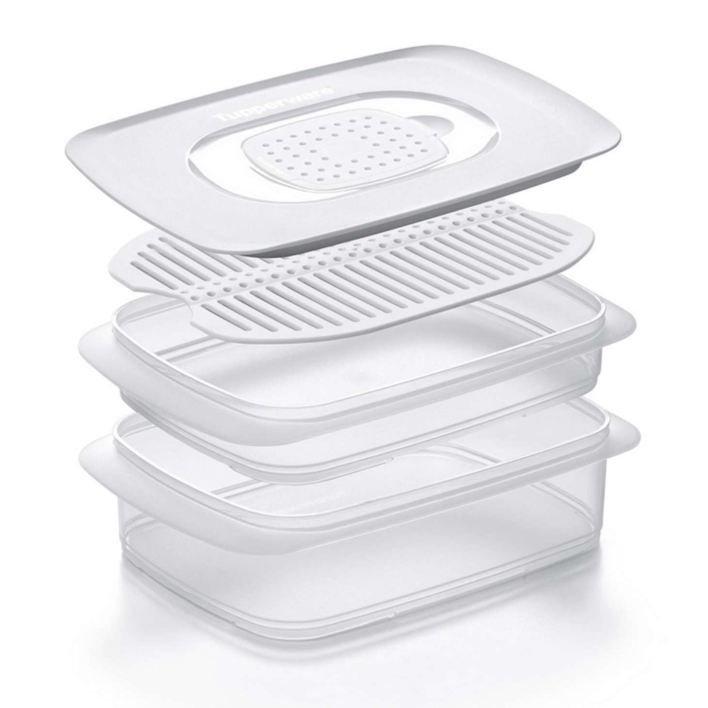 Dit vershoudrooster zorgt ervoor dat de inhoud van je Tupperware Vleeswarenschalen droog blijft.