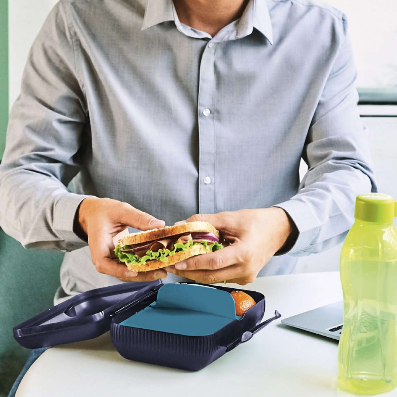 - Pas de Tupperware lunchbox aan aan jouw behoeften en type lunch dat je wil meenemen dankzij het vouwbaar tussenschot. Je kan de lunchbox in 3 secties indelen.