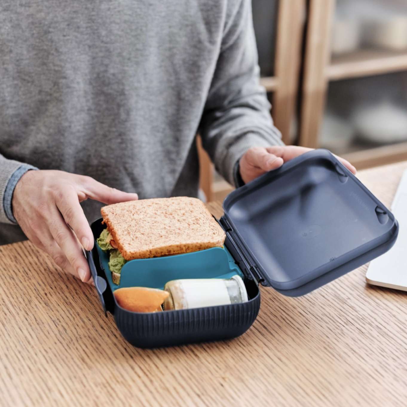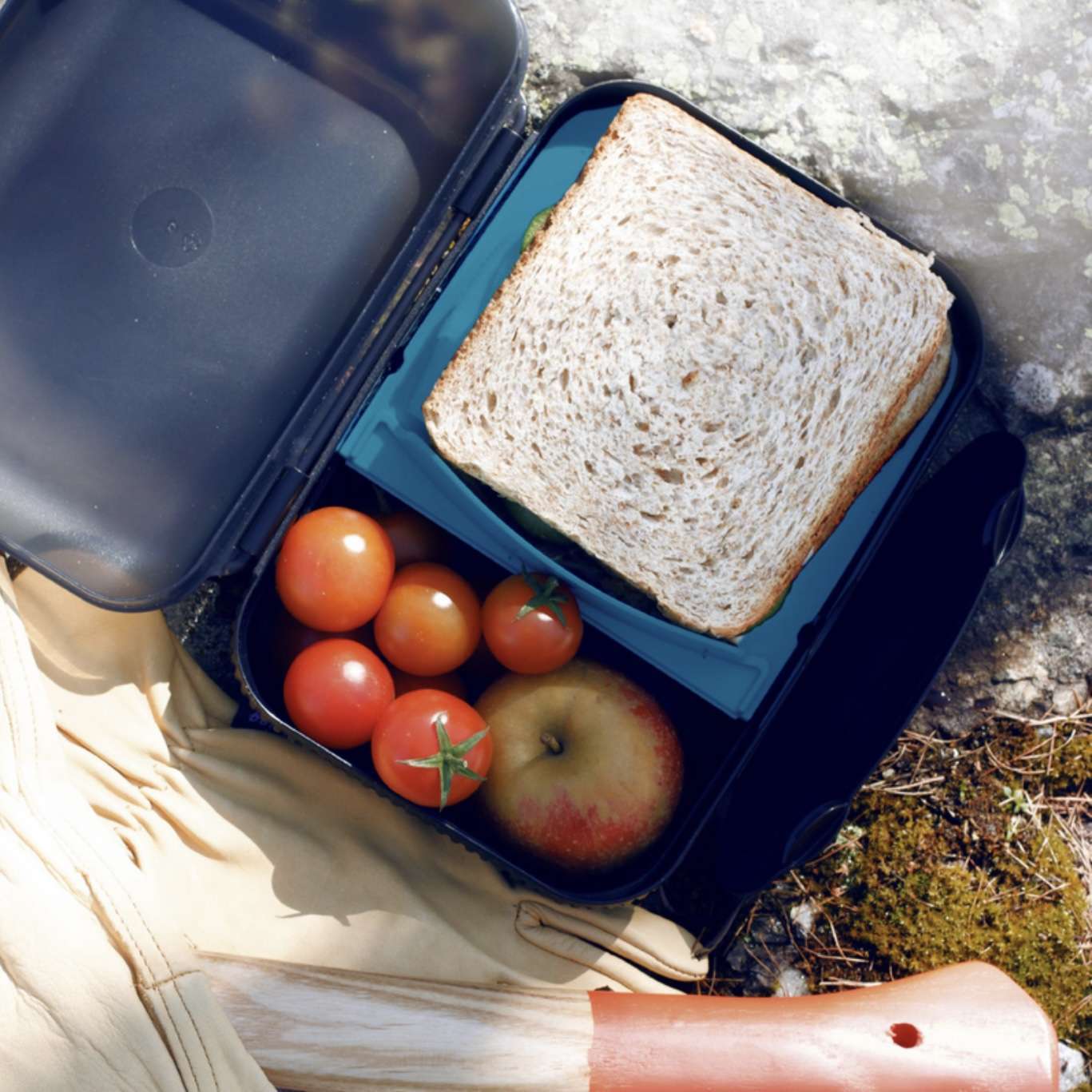 - Vlak tussenschot: plaats je boterhammen of sandwich onder het tussenschot. Bovenop het tussenschot kan je nog extra’s plaatsen.