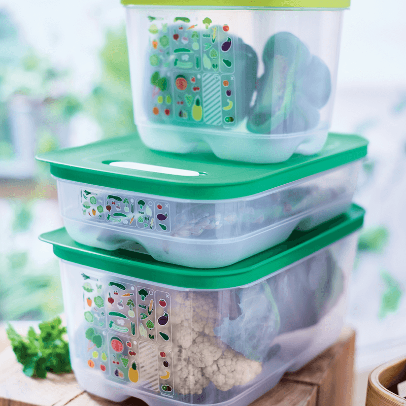 Bewaar al je groenten en fruit en verleng hun houdbaarheid met de VentSmarts van Tupperware. Met deze slimme bewaardoos verspil je minder voedsel én bespaar je geld, want dankzij de gecertificeerde, innovatieve technologie blijven je groenten en fruit langer vers. De VentiSmart dozen zijn voorzien van een praktisch schuifklepje met drie verschillende standen die de binnenkomende zuurstofstroom en de uitgaande kooldioxidestroom in balans houden. De handige pictogrammen op de bewaardoos geven aan wat je erin kan bewaren en hoeveel lucht er nodig is. Het ventilatiesysteem zorgt dan voor de gewenste luchttoevoer. Zo kan je de houdbaarheid van al je verschillende soorten groenten en fruit optimaliseren!